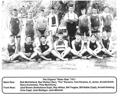 The name ‘Water Rats’ was apparently given by Dr Bernard Blomfield, a Sydney specialist and swimmer of some repute who always noticed them diligently training in the men’s baths every time he visited the area and exclaimed, “What, you water rats at it again?”